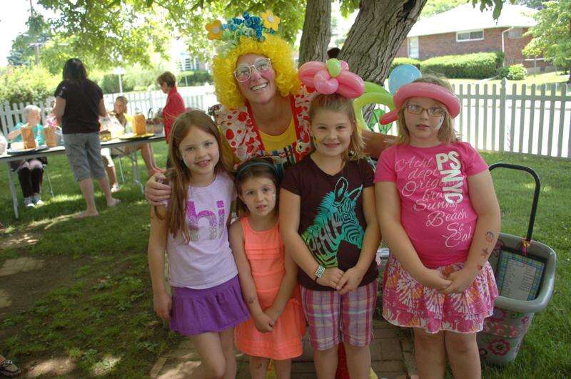 Tootsie the Clown captivates the kids at St. John's UCC's "Celebrate Community Day" June 7 at the Grape Street, Fullerton, church. Pictured are Maya Williams, Sophia Hess, Bailee Neitz and Jillian Sommer.