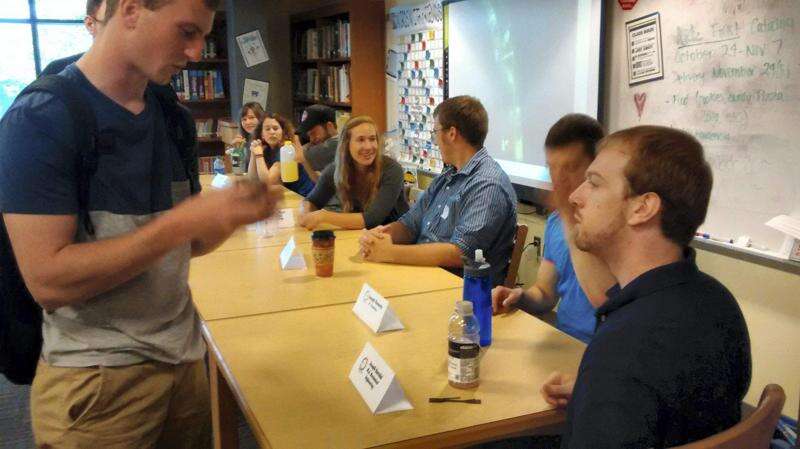 The group, Davis Evans, Libby Johnson, Bev Post, Ashley and Kyle Reinhart and Joe Venusto fielded questions on college life and some to the choices they've made.