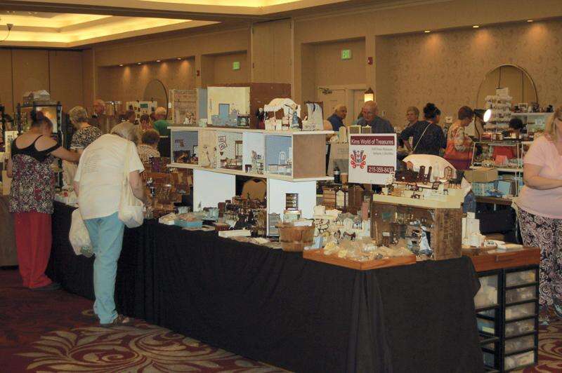 PRESS PHOTO BY APRIL PETERSON Vendors and enthusiasts fill the ballroom at the Holiday Inn, Fogelsville, at the 38th annual dollhouse and miniatures show and sale July 12. Sheryl Segal makes the trip from her home in Haddon Heights, N.J., every year. Segal has been a fan of miniatures since childhood.