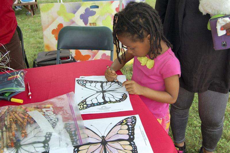 Support group representatives offered paper butterflies for the children to color.