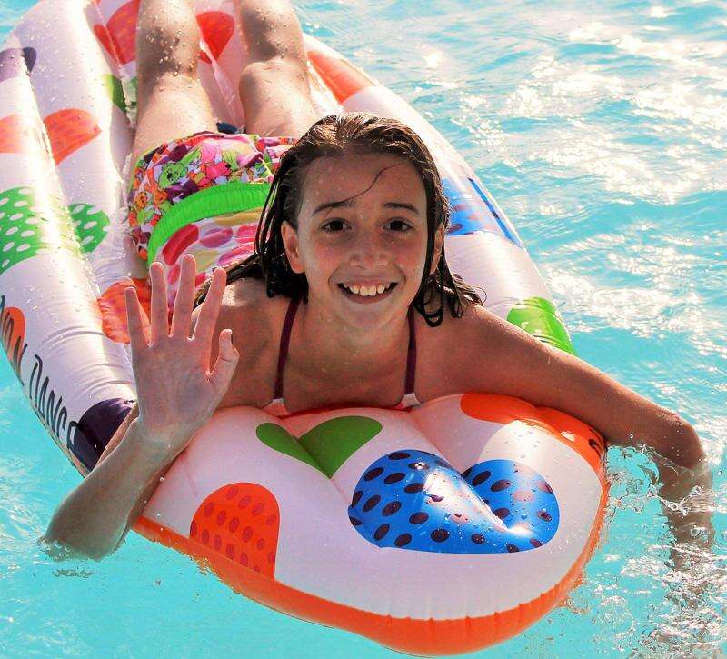 PRESS PHOTO BY TINAMARIE MARTIN Maria DeLeon, 10, of Orefield won a surf board race at the Coplay pool on July 22. Dan Wade, owner of D.H. Productions, presented DeLeon with a gift card.