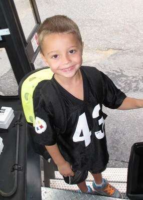 PRESS PHOTOs BY C. RICHARD CHARTRANDStudents at Western Salisbury Elementary and Salisbury Middle schools learn to navigate their schools in orientation day events Aug. 31. ABOVE: Matthew Tomcics heads up the school bus stairs on his way to orientation day at Western Salisbury Elementary School.