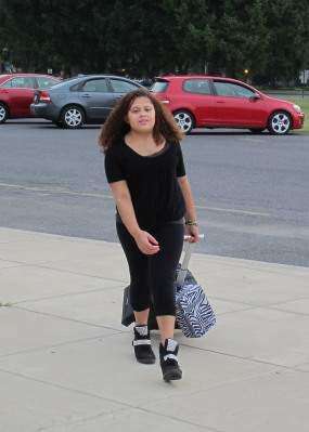 Students at Western Salisbury Elementary and Salisbury Middle schools learn how to get around and visit classrooms as part of orientation day events Aug. 31. RIGHT: Quianna Strickland is the first student to arrive at Salisbury Middle School.PRESS PHOTOS by C. RICHARD CHARTRAND