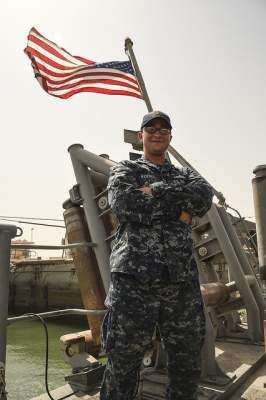 Petty Officer 2nd Class Matthew Koenig, a Navy damage controlman, lives and works at a Navy base in Manama, Bahrain, where the USS Sentry is based.