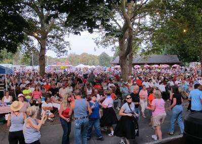 Above: Flamin' Dick and the Hot Rods is a 50s and 60s Rock-n-Roll Party Band, playing a variety of music from the years of 1955 to 1968 - “The Golden Years of Rock-n-Roll.” Based in Reading, the group had people dancing at Wheels of Time in Macungie Memorial Park. Right: Wendy Myers, who was Miss Rod & Custom Show 2013 dances with Sophie KellyPRESS PHOTOS BY C. RICHARD CHARTRAND