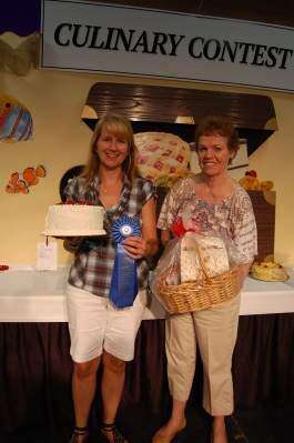 Remove cake from pan, and slice horizontally into 3 sections. Put bottom section on a serving plate and cover with 1 cup of topping and sprinkle with chopped toffee. Repeat with next section, then place on the top cake layer and cover with the rest of the topping. Garnish cake as you like. Store cake in the refrigerator.