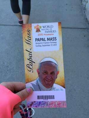 Pardoe is among the fortunate 80,000 who received advance tickets to view the Mass within the special three-block zone in front of the altar, but she was also privileged to actually be in vited to participate in the ceremony. She got so lucky because she is involved in a service organization called Philadelphia Service Immersion Program, or PSIP, through her university. She moved in to her dorm at St. Joe’s four days early this past summer and spent the time working on a vegetable garden project for the community in West Kensington. Later, all those involved with PSIP were sent emails inviting them to apply for a Papal Mass ticket, so she applied.