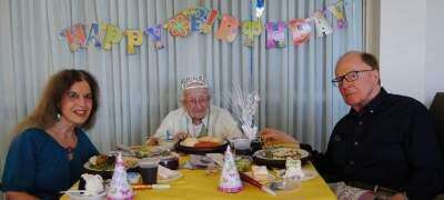 Kathryn Rosencranz celebrates her 104th birthday Sept. 23 with relatives Doris and Lowen Marshall as well as friends and staff at Phoebe Allentown Health Care Center. Rosencranz is a native of Kreidersville and founded the Girl Scout troop at Grace United Church of Christ in Northampton. The Marshalls traveled from Boothbay Harbor, Maine, for the event.press photo by stacey koch