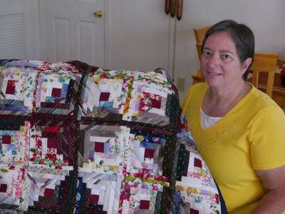 PRESS PHOTO BY LOU WHEELANDDeborah Huntington of Berwick shows one of her quilts made of ties and hankies at her mother's home in Upper Macungie.