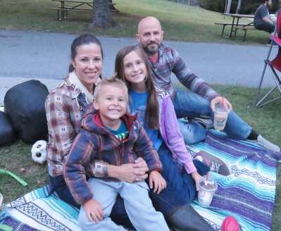 PRESS PHOTOS BY ALEXIS BOVEThe movie “Penguins of Madagascar” was shown Sept. 25 under the stars at the Lehigh Valley Zoo. Jessie and Holly Armbuster of Allentown and their children Lilly and Isaac enjoy snacks and a night of fun at the zoo.
