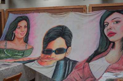 Eleanor Jenitis, owner of ELtiques, LLC, Fogelsville, debuts the portrait of two women and a man Oct. 4 at the Allentown Paper Show. βIt's an attention getter,β Jenitis said of the painting, about the size of a queen size sheet. Jenitis, who received the artwork in items from Africa, more often deals in historic documents and Pennsylvania-themed paintings.PRESS PHOTO BY APRIL PETERSON
