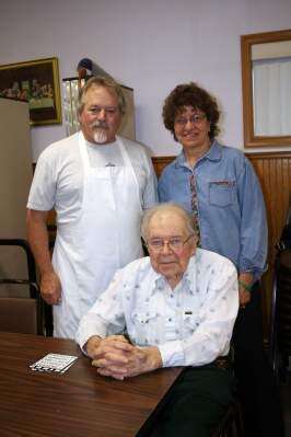 Jerusalem (Red) Church, Kempton, had its annual fall basket social Oct. 4. Dennis Schroeder of Kutztown and Church Stated Supply UCC Pastor Wilbur Albright of Macungie play bingo as Charlotte Schroeder assists with the game.