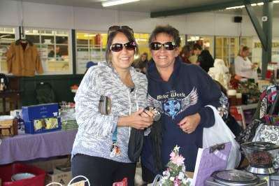 With their arms already full of bargains, Pam Howells and her sister, Ladonna Hillanbrand, both of Whitehall, show off their newest purchase - sunglasses - during the annual Egypt event.PRESS PHOTOS BY LINDA ROTHROCK