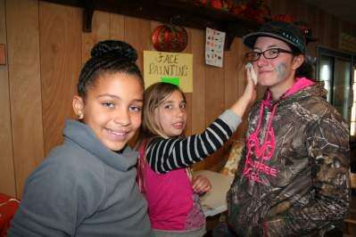 Rhyan Simons of Bethlehem waits to have her face painted by Kamryn Fink of Heidelberg Township during the annual Lehigh County Open Gate Farm Tour at Heidel Hollow Farm, Germansville. Kelsey Nissley of Mertztown shows her design just completed by Kamryn.
