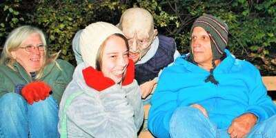 PRESS PHOTOS BY TINAMARIE MARTINMary Crafcheck and Gabby Meixell, of Allentown, and Stephen Fiest, of Northampton, attract the attention of a frightful sight during the township's Haunted Hayride, held Friday and Saturday in the Whitehall Parkway.