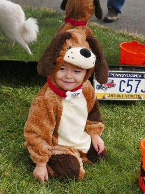 PRESS PHOTO by LOU WHEELANDCommunity Fire Company No. 1, Schnecksville, recently had its annual Truck or Treat fundraiser celebration with a convoy of some 86 decorated big rigs and more. Little Levi of Pipersville was doggedly looking forward to chasing the winning truck.