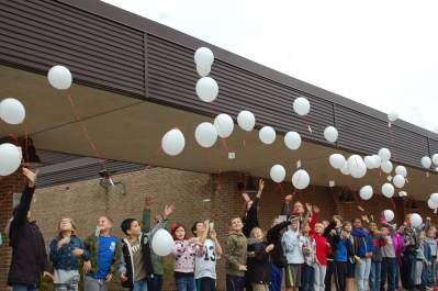 Dauberman then counted down and on “one” the students released the balloons. Soon faces of sadness were replaced with expressions of happiness as the students watched the balloons slowly drift skyward.