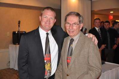 PRESS PHOTO BY JIM MARSHWestern Salisbury Fire Department Deputy Chief Jerry Royer, right, is recognized as the fire department's longest serving firefighter by Chief Joshua Wells as Royer marked his 38th year as a crew member at the fire department's service recognition banquet Nov. 14 at Iron Lakes Country Club.