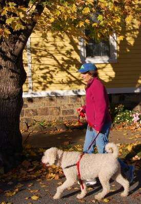 Press Photo by Tim GilmanKaren White walks her poodle Nessie along Wall Street in Bethlehem's residential Historic Districts where some leaves remain on the trees. “I grew up in Bethlehem and I am happy to be back,” said the Bethlehem native, who has returned to Christmas City USA after living elsewhere for a number of years.