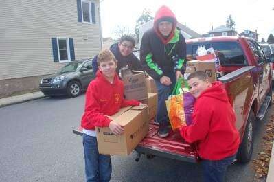 Scouting for Food Tweet Published December 01. 2015 11:00PM by The Press Scouts Alfonso Kasper, Jesse Nichol, Zach Schultz and Sam Millheim unload boxes of food that will help restock the shelves. Food was collected from residents in the borough, Stiles and Fox Hollow (North Coplay).