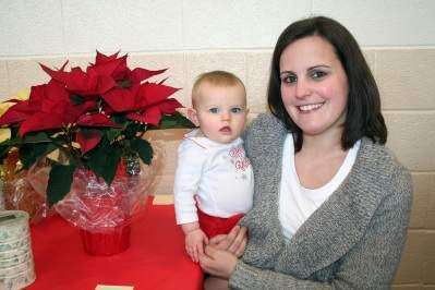 PRESS PHOTO BY DEBRA PALMIERICorinne Heintzelman, 7 months, of Schnecksville, waits with her mom, Ashley, to meet the Jolly Ol' Elf for the first time during the Breakfast with Santa Dec. 5 at Union Lutheran Church, Schnecksville.