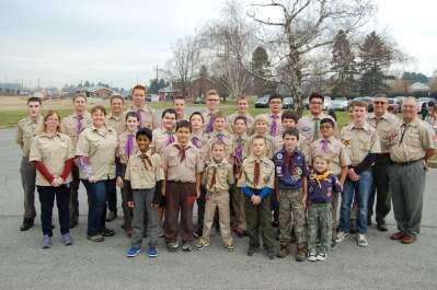 More than 30 Scouts from Boy Scout Troop 1600 and Cub Scout Troop 1600 and their leaders participated in the ceremony and placed wreaths.