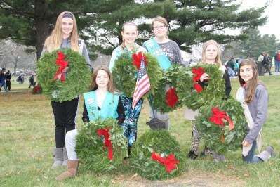 PRESS PHOTOS BY LINDA ROTHROCKMembers of Cadette Troop 6190, which meets at First Presbyterian Church in Hokendauqua, participate in Wreaths Across America Saturday at Cedar Hill Memorial Park, Airport Road, Allentown. The event is held every December at Arlington National Cemetery, while other ceremonies are coordinated both nationally and internationally. Pictured above are Meghan Emery, Mia