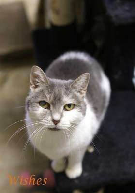 Wishes is a great little cat who would love a home. She is in and out of our sick room but would thrive out of the shelter.