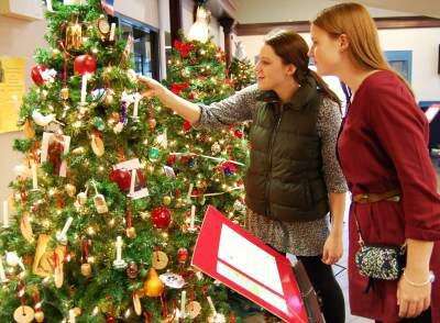 Press Photos by Tim GilmanSisters Samantha and Sydnee Strickler visit the holiday season exhibit “An Ethnic Christmas in South Bethlehem” which features 19 decorated Christmas trees representing a variety of cultures that celebrate the holiday season. The annual free display, presented by the South Bethlehem Historical Society, continues through Jan. 9 in the lobby of the Comfort Suites at 120