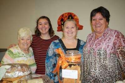 PRESS PHOTO BY STEPHANIE RAPHUNFrom left, Julie Bauer, Kaitlin Jackson, Cheryl Scholl and Kim Jackson offer big smiles to and baked treats for guests at Holy Trinity Roman Catholic Church's basket social, held recently at the 4456 Main St., Egypt, church.