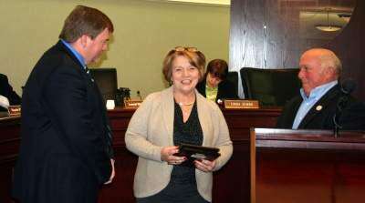 PRESS PHOTO BY BERNIE O'HARENorthampton County said good-bye, for now to council members Lamont McClure and Scott Parsons just before the Dec. 3 meeting. McClure, a Bethlehem lawyer who had served since his appointment in 2006, decided against seeking re-election this year. A fearless advocate of Gracedale, McClure also authored the ordinance under which the Northampton County Gaming Authority was