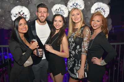 PRESS PHOTOS BY DANA GRUBBNew Year's Eve at the Vision Night Club gave friends a chance to dress up to celebrate the advent of 2016. Kelsey Millheim, Chris Rodrigues, Becca Cabrera, Lara Cesco and Becky Donoso meet up for an evening of New Year's revelry with balloons as a backdrop, waiting for midnight. Rodrigues is from Easton and the women all reside in Bethlehem Township and Bethlehem.