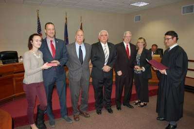 Whitehall Township Mayor Edward D. Hozza Jr. and township Commissioners Phillips Armstrong, Philip Ginder, Dennis Hower and Jeff Dutt took their oath of office Monday. Magisterial District Judge Robert Halal presided over the brief ceremony.