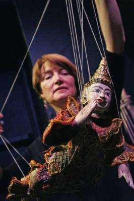 “Mae Swe” reflects on the idea of home and the theme of belonging, using figures from Burmese history and folktales, traditional Burmese puppets, Burmese music, lacquerware and traditional Burmese attire.