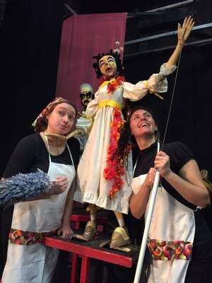 Kayla Prestel portrys Sylvie. Mallory DeForest portrays Carmen. Both are former Touchstone Theatre apprentices. The two actors are also the puppeteers.