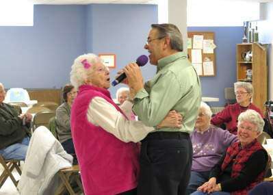 PRESS PHOTOS BY C. RICHARD CHARTRANDDavid Loehr entertains the Emmaus Senior Citizens with a karaoke program Jan. 15 at the meeting held at St. Matthew's E.C. Church, Ridge and Fifth streets, Emmaus. ABOVE: Marian Sell dances with David Loehr as he serenades her.