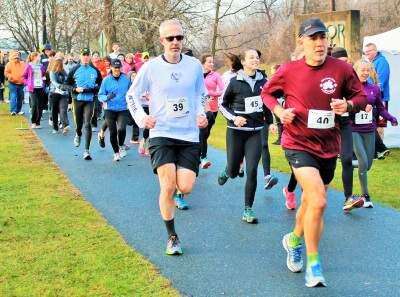 Participants - 60 in all - set out Saturday during the Frosty 5-K, held at Saylor Park, Coplay. The run/walk event was part of a Northampton Area High School DECA community service project that benefited the Ironton Rail Trail. In addition to the race, a basket raffle was held and food, drinks and s'mores were available.