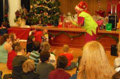 RIGHT: Jingles The Elf captures the children's attention with her lighthearted antics and entertainment at the party.PRESS PHOTOS courtesy LION KARLENE LAUB