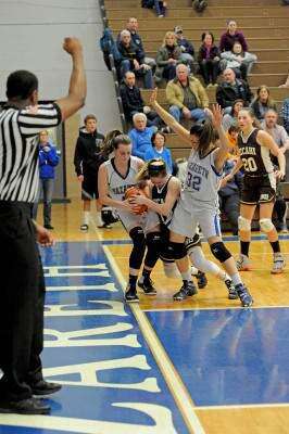 Maddie Capuano sparked the Hurricanes with a three-pointer, and a lay-up on a steal, and Kaylin West scored four points before the second quarter ended, and the halftime score was 38-26.