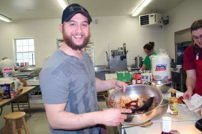 PRESS PHOTO BY DEBRA PALMIERIBen Leonti of Hamburg coats chicken wings with barbecue sauce Feb. 6 at the Jacob's Church Senior Youth Group fundraiser. The youth are planning a July trip to Kingdom Bound in New York. Additional photos on page A2.