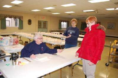 PRESS PHOTO BY SUSAN BRYANTLaRue Guth of North Whitehall hands Carol Kotch of Ballietsville her change for purchasing a cherry pie Feb. 15. The Northern Valley Ambulance Corps Ladies Auxiliary had the fundraiser at their headquarters in Ormrod. Handing Kotch her pie is NOVA Ladies Auxiliary member Sandy Miller of Schnecksville.