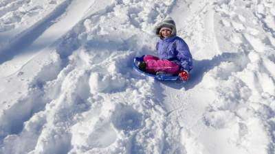 Sledding funEmilia Lopiccolo of Cetronia rides her sled downhill at Cedar Creek Park West, South Whitehall, during the last snowstorm on Jan. 23, which dumped more than 30 inches of snow on the Lehigh Valley.PRESS PHOTO BY LOU WHEELAND