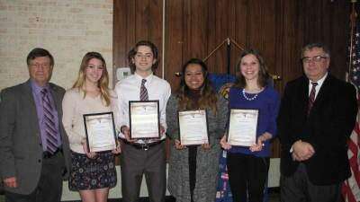 CONTRIBUTED PHOTOThe Fountain Hill Exchange Club honored four students from Liberty HS during its regular monthly meeting recently. Madeline Sinkler, Leticia Patino Flores, Hannah Gallagher, and Jacob Gallagher were selected by high school staff as the Exchange Club Student of the Month. The students, along with their parents, were dinner guests and each student presented a Certificate of Merit.