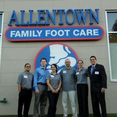 PRESS PHOTO BY JENNIFER BODISCHAllentown Family Foot Care recently celebrated the grand opening of its new state-of-the art facility. Taking a break from the festivities inside, Drs. Philip Jimenez, Kevin Short, Ann Anderson, Randy Smargiassi, Lara Baker and Raymond Fritz stand in front of the giant sign visible from Walbert Avenue, South Whitehall Township.