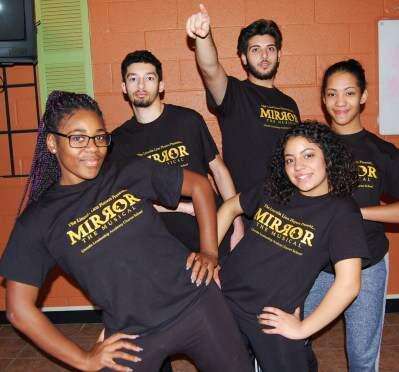 PRESS PHOTO BY TIM GILMANLincoln Leadership Academy Charter School “Mirror: The Musical” cast, from left: La-re Brown (front), Jeremiah Colbert, Fadi Mamari (center), Mya Nales (front) and Giselle Tavarez