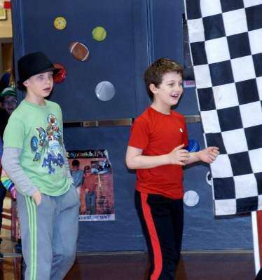PRESS PHOTOS BY LINDA DEIBERTShane Marth and Ethan Davis from Jodi Chandler's third grade class enter the gymnasium for the Fun Run assembly at Northwestern Elementary School.