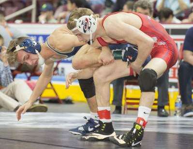 152: Hayden Hidlay, Mifflin County, major decision. Jimmy Saylor, Easton, 13-4.