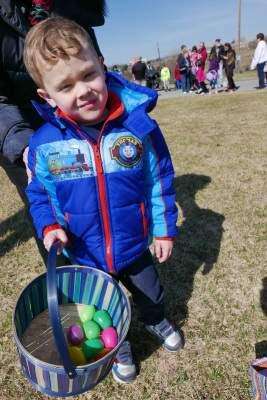 PRESS PHOTO BY LOU WHEELANDCommunity Fire Co. No. 1, Schnecksville, sponsored a vendor fair and Easter egg hunt March 12 to support the firefighters. Haydn Hunt, 4, of Whitehall, had a good time collecting his eggs. His grandparents Ed and Diane Kaintz were on hand to enjoy their grandson's excitement.