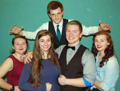 PRESS PHOTO BY TIM GILMANNorthampton High School “Oliver!” cast, from left: Haylie Burkit (Artful Dodger), Celia Doll (Oliver), Paul Fuica (Fagin), Madison Lahr (Nancy), and, top, center, Nick Longenbach (Bill Sykes)