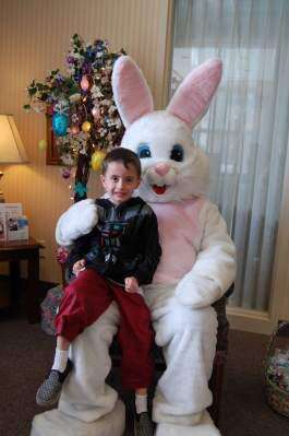 PRESS PHOTOS BY SUSAN BRYANTCooper Jones of Orefield is all smiles as he sits on the Easter Bunny's lap March 25 at The Neffs National Bank, Neffs.